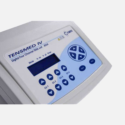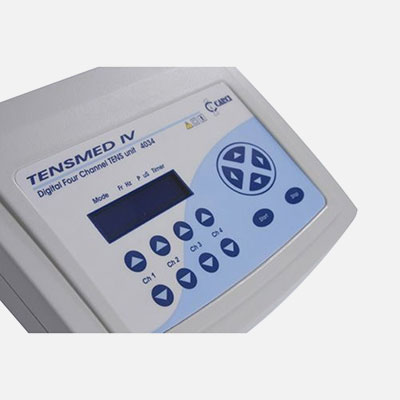 EL TENSMED IV Ref. 4034 de cuatro canales, ofrece seguridad y facilidad de manejo. Los parámetros de programación se muestran en la pantalla de cristal líquido (LCD), que permite al usuario ver todos los parámetros programados. El uso del teclado de membrana con teclas separadas para la programación y el control de la intensidad permite la facilidad de uso del profesional médico.