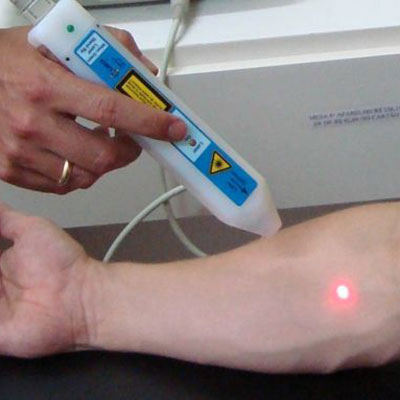 · Láser para Fisioterapia con punteros de luz no visible y luz roja.