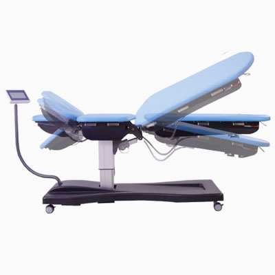 Esta nueva cama de tracción es diseñada para permitir el tratamiento en 3 posiciones: flexión / extensión, rotación y flexión lateral. La posibilidad de mover al paciente en tres ejes permite al fisioterapista realizar el tratamiento en muchas posiciones de la columna vertebral.