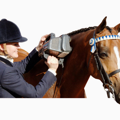 - Un interruptor de circuito de falla a tierra permite el uso del dispositivo en establos. La capacidad de tratar a su caballo inmediatamente acelera el proceso de recuperación, generalmente reduciendo el tiempo de recuperación a la mitad.